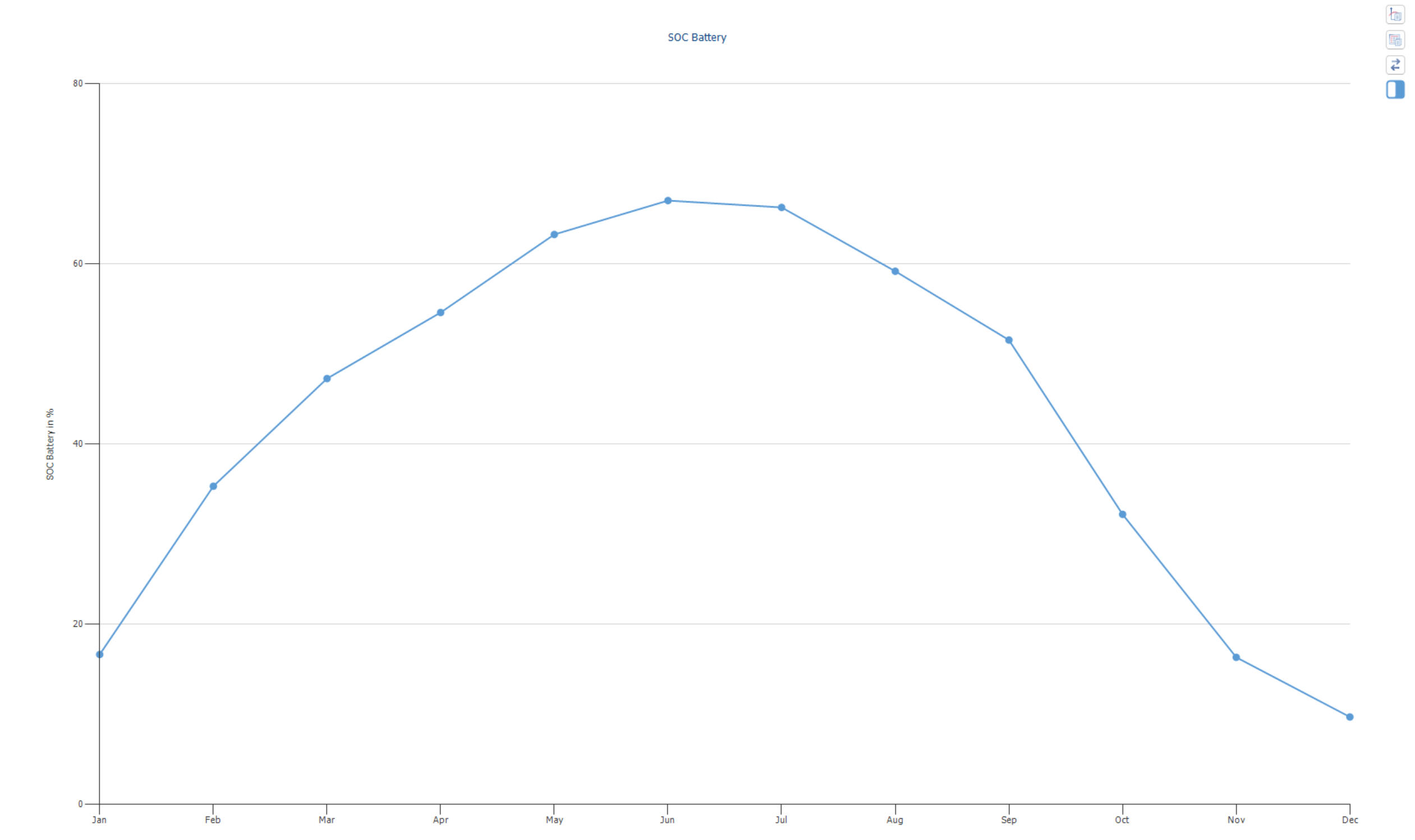 Graf priemerneho nabitia batérie počas roka. Všimnite si kritické zimné mesiace (november – február), kedy drahá technológia leží v pivnici takmer nevyužitá.